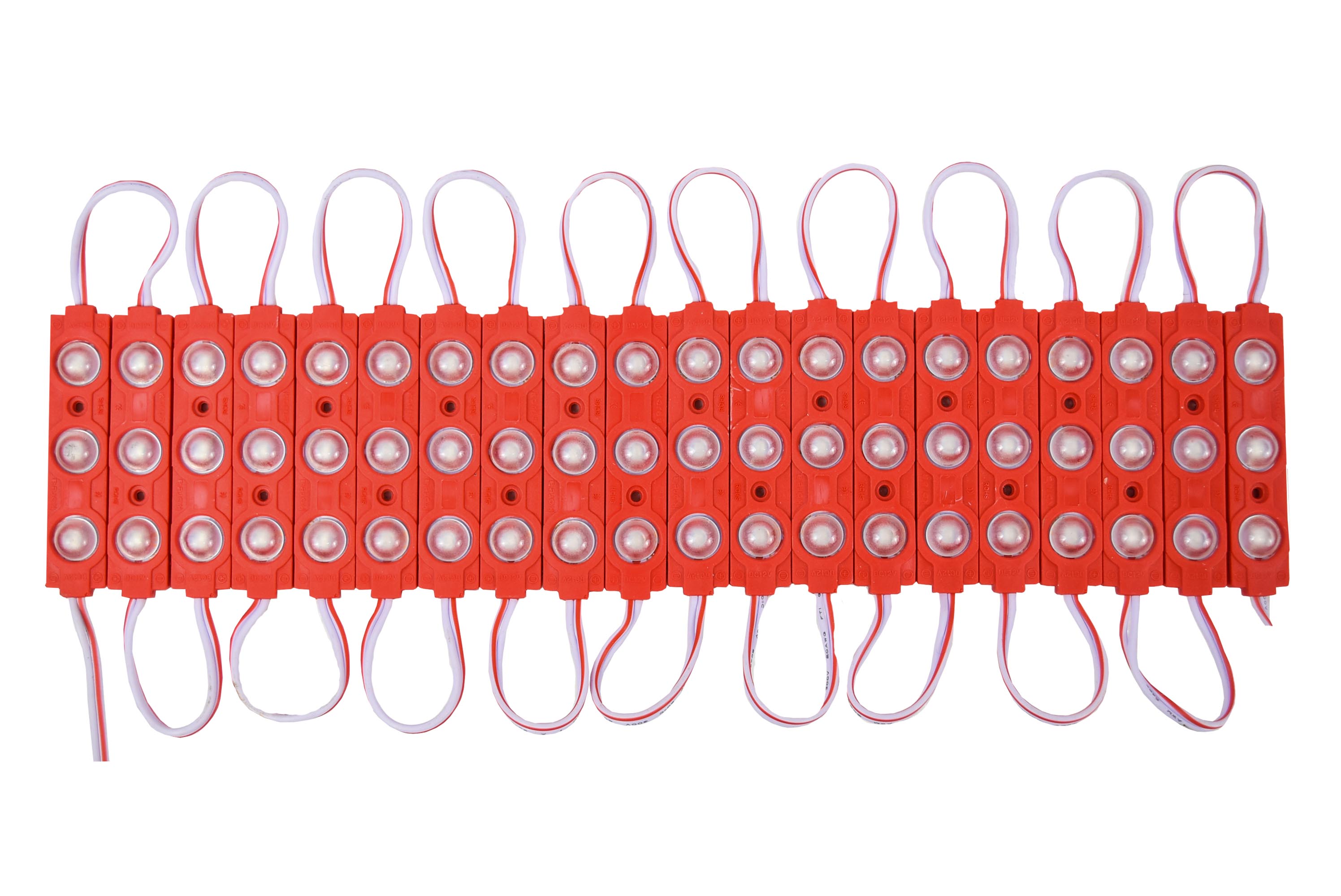 The LEDs Red Module SMD5730 is a versatile lighting solution with a wattage of 0.72 watts, drawing only 60mA at 12V. It provides ample brightness with a luminous output of 110 Lumens. It is durable with an IP67 rating and a PVC shell. Its compact size of 78x15x5mm makes it suitable for any setup. With its red hue, it adds a distinct touch to any setting and is suitable for both indoor and outdoor applications.