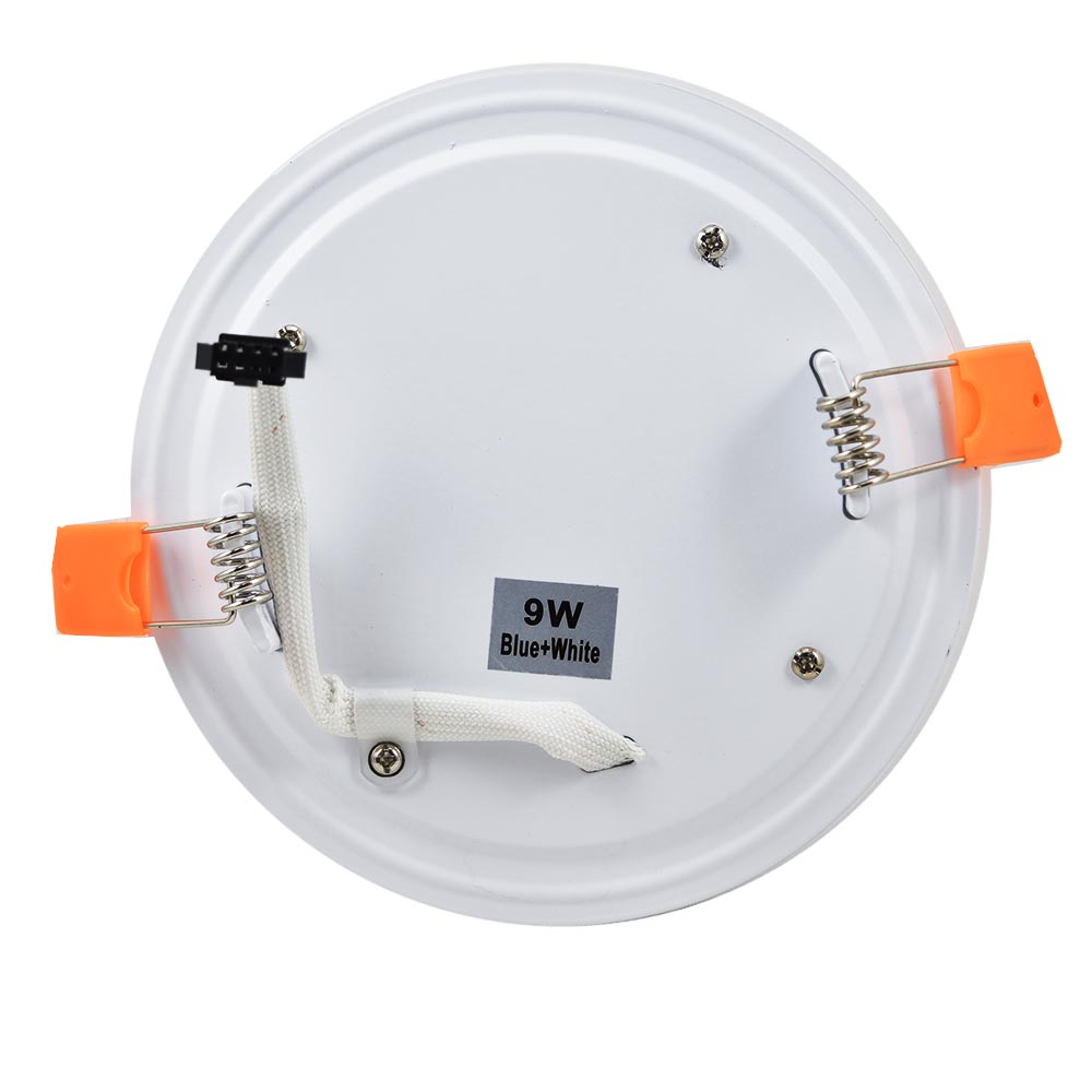 The A-BL5.75-R9W is a 5.75-inch round recessed LED ceiling light designed for commercial and residential ceiling applications. It features a dual-zone configuration with a primary white light field and a blue light border, making it suitable for accent or ambient lighting installations where visual zoning is required. The fixture operates at 9W total draw using SMD2835 chip technology, delivering 675 lumens at 4500K color temperature with a CRI of 75. The acrylic and aluminum construction is rated IP20, appropriate for dry indoor environments. Input voltage is rated at 120V AC. The unit measures approximately 6.5 inches in diameter with a 2-inch profile depth. No certifications have been confirmed in available source documentation for this SKU. Contractors and specifiers should verify compliance requirements with their local jurisdiction prior to installation. Contact Poli LED & Signs for warranty terms and project-specific documentation.