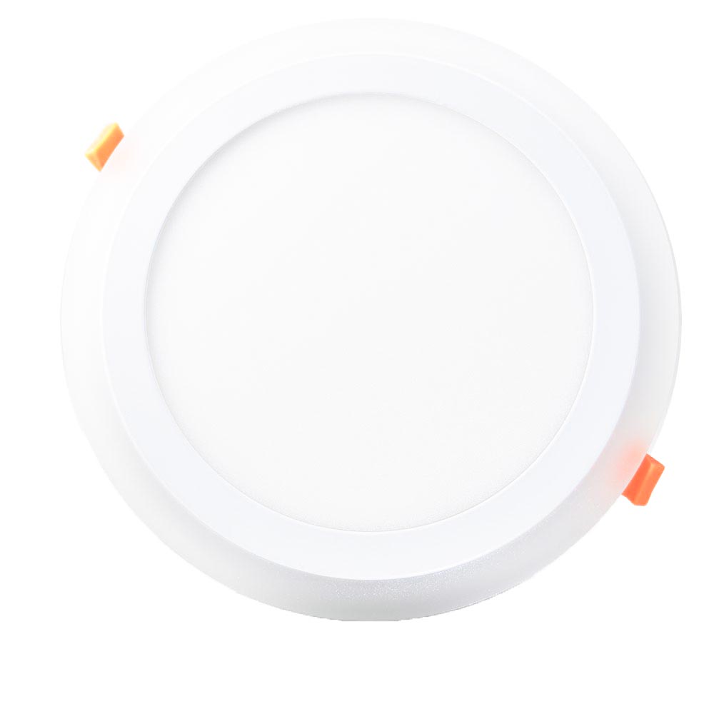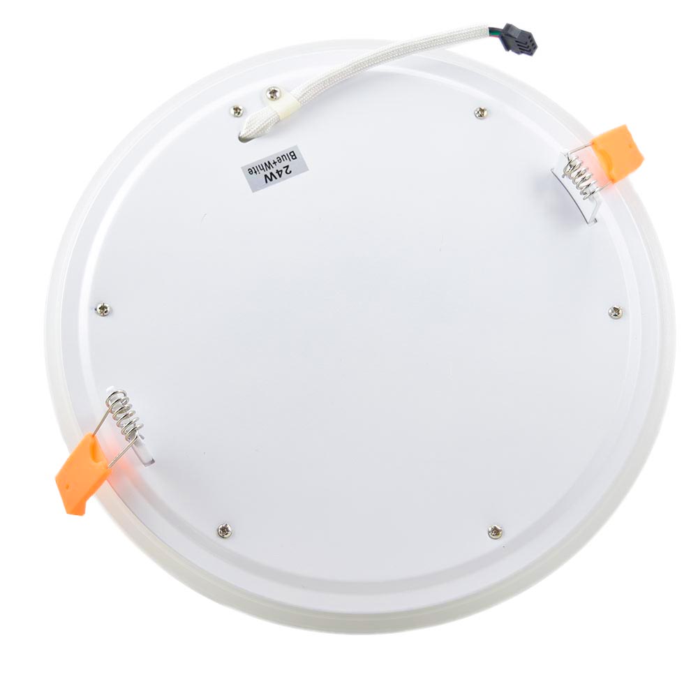 The 24W 9 1/2" Round Ceiling Light features an 18W white light and a 6W blue light border. It is designed for both residential and commercial use, providing functional lighting and decorative appeal. The lights create a harmonious atmosphere, and the ceiling light is easy to install in standard ceiling openings. With its wide input voltage range, it is compatible with various electrical systems worldwide. Overall, it is a high-quality, energy-efficient lighting solution suitable for any space.