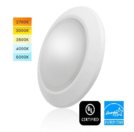 6'' CCT tunable disk down light, 15W, 2700K/3000K/3500K.4000K/5000K tunable , 1100lms White finish, 120V, CRI>90, ETL and ES Listed, 5 years warranty,12pcs/ carton