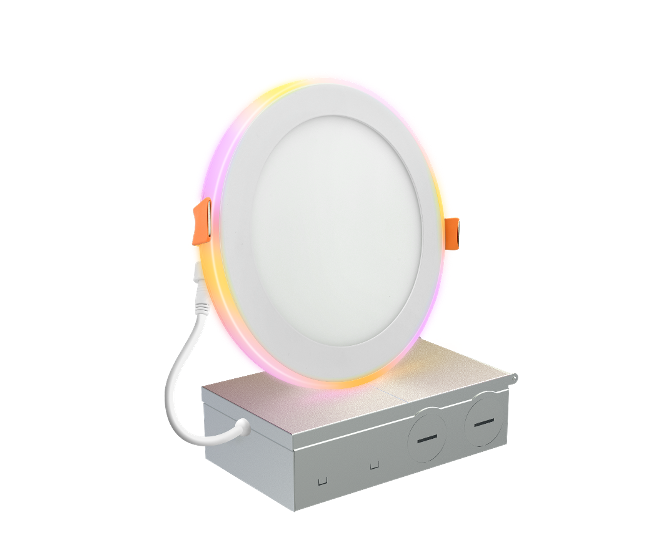6" Smart CCT Slim Panel with RGBIC Night Light Smart TUYA App 6.Inch cutout 6.89 Inch diameter 13W+3W 120VAC 60Hz PF0.9 Triac Dimmable 27K 65K+RGBIC 1100LM FCC FCC-ID Cert 5 yrs wrty+wire acc