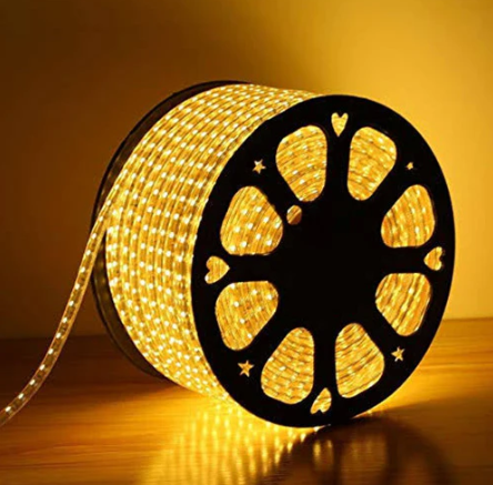 9.5mm pin, 14.5*7.5mm LED Rope Light, 50m, 110VAC, Yellow, 8W/meter, 22lm/chip, 60 chip/meter, IP67, 1 yr warranty, PVC coating, sold by meter