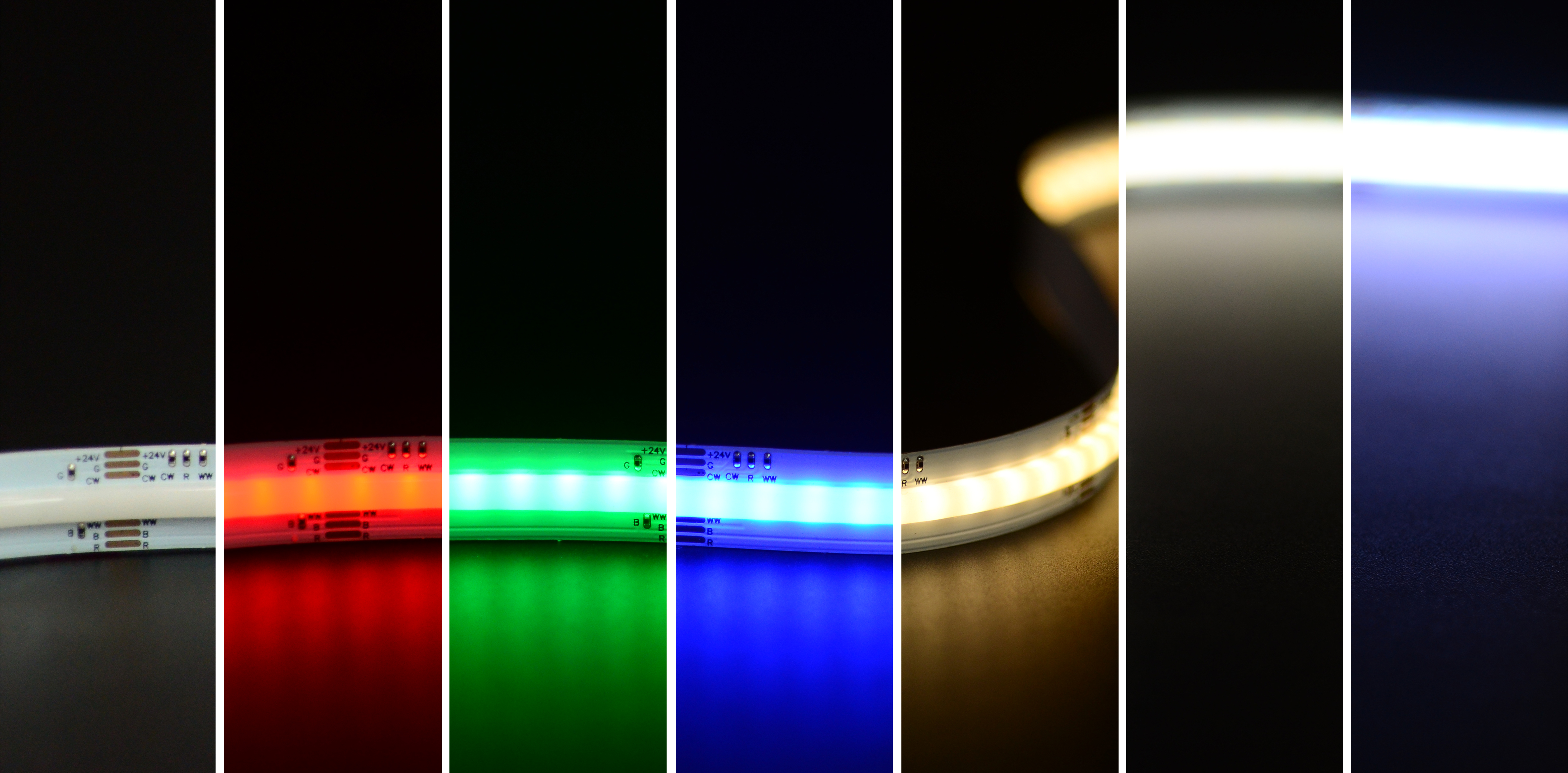 COB strip light 840leds/m;DC24V;RGBCCT, 12MM PCB;IP20;19W/M;without UL logo on PCB;illusion standard, 5M per roll, Wrrty: 3 yrs