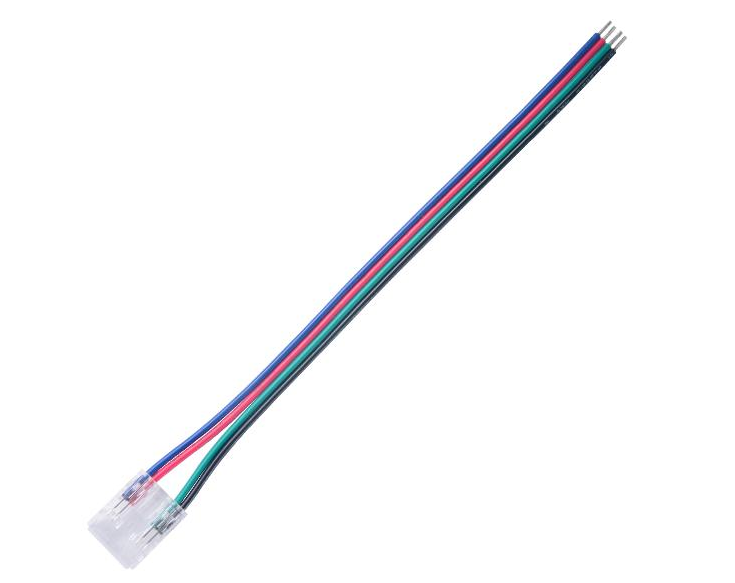 Connector for COB strip IP20 Strip to Power 150mm 22AWG PVC Black-Green-Red-Blue 12mm 4 pin, DC3V~24V / 3.5A 5 Pcs/Bag