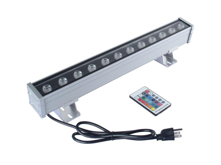 Discontinued Item- LED RGB Wall Washer 54watt AC100-265V RGB 3in1 Size 20inx2inx2in IP65 LED Chips 12 x 3W Aluminum 3m outlet cable RF Remote included
