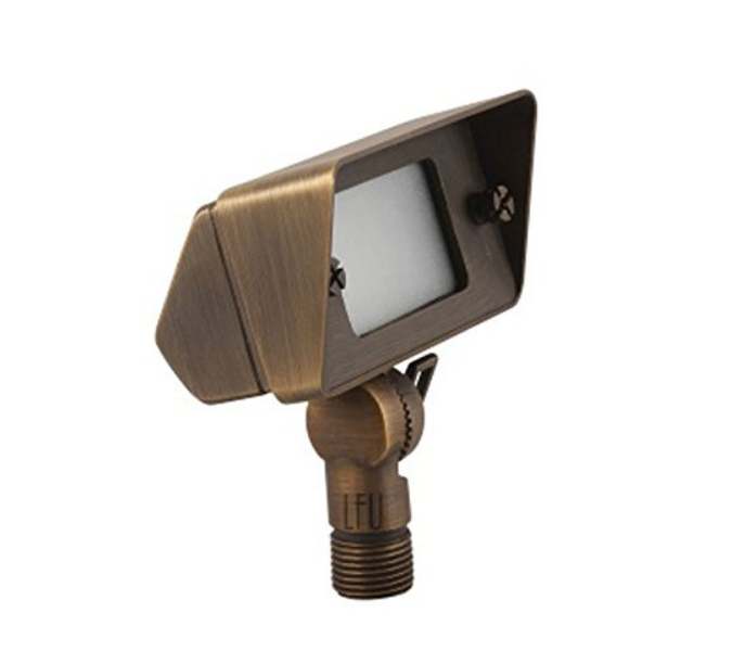 Discontinued Item- Solid Brass G4 Landscape Flood Light 12v 1 meter #18 cable 9in spike adjustable angle G4 up to 50W (bulb not included) Dimensions 2.5 degrees x 4 degrees x 2 degrees Body Spike 8.75 degrees x 2.0 degrees frosted heat-resistant glass