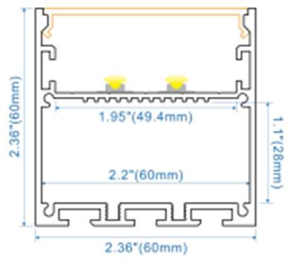 Surface Hanging - W:60mm*H:60mm*L:9.84'/118" (3m), InnerW:49.4mm