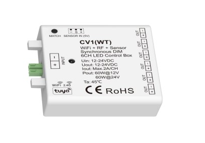 12-24VDC; 6CH WiFi+RF+Sensor Synchronous DIM LED Control Box Dimming interface: RF Wireless, WiFi,Sensor for cabinets