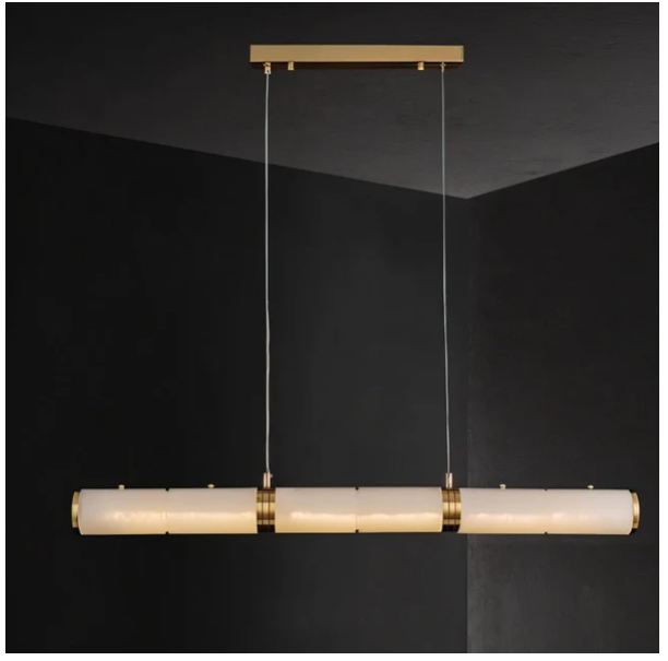 RS CHANDELIER TEVA RECTANGULAR Color: Nickel Material: Alabaster Marble & Copper, Dimensions: 54 x 20 x 4 in - 137 x 51 x 10cm