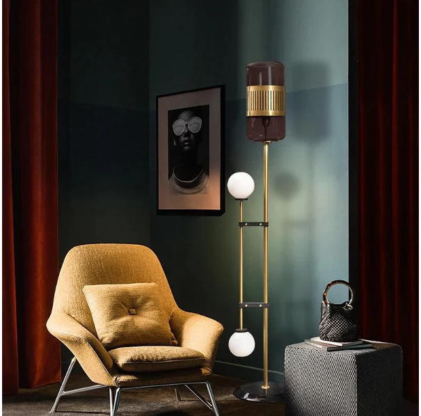 RS FLOOR LAMP DISANU Color: Brass Material: Glass & Iron, Dimensions: 11.8 x 11.8 x 65,3in - 30 x 46 x 166cm