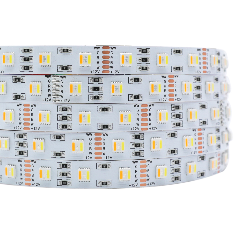 Waterproof Outdoor 5 Channel RGB+CCT (3000K-6500K) LED Strip Light,SMD5050 5in1 chip, IP65 Silicone Tube, 24VDC, 19.2w/meter, 96W/roll, 12mm width, CRI >80, cut every 3 LEDs, 2 year warranty , UL listed