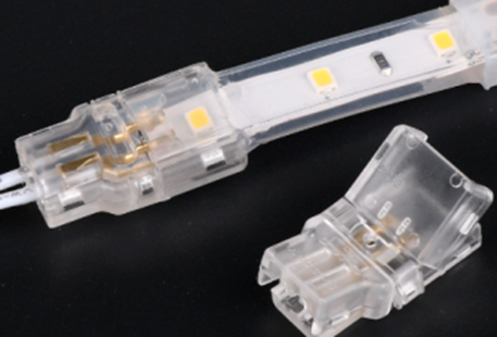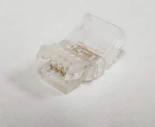 Wire to PC board clear connector for outdoor RGB color LED strip in 10mm, cable for 18-20AWG > IP65 Connector >Strip light to cable union > Insert 18-20AWG cable via the narrow end 5pcs/bag