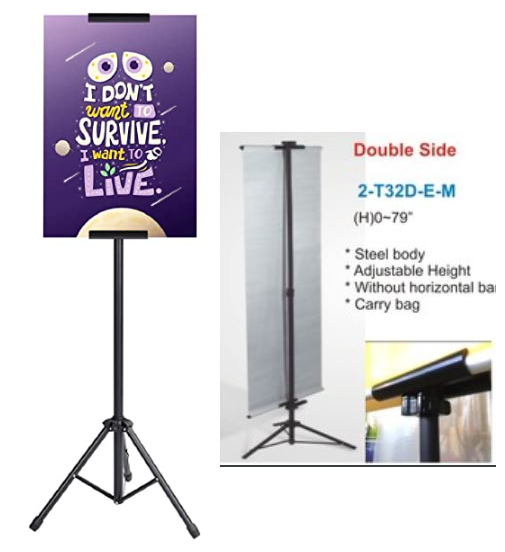 Discontinued Item- T type doubles sided banner adjustable steel display (H) 0-79in used with rigid boards or used with banner with horizontal bar.