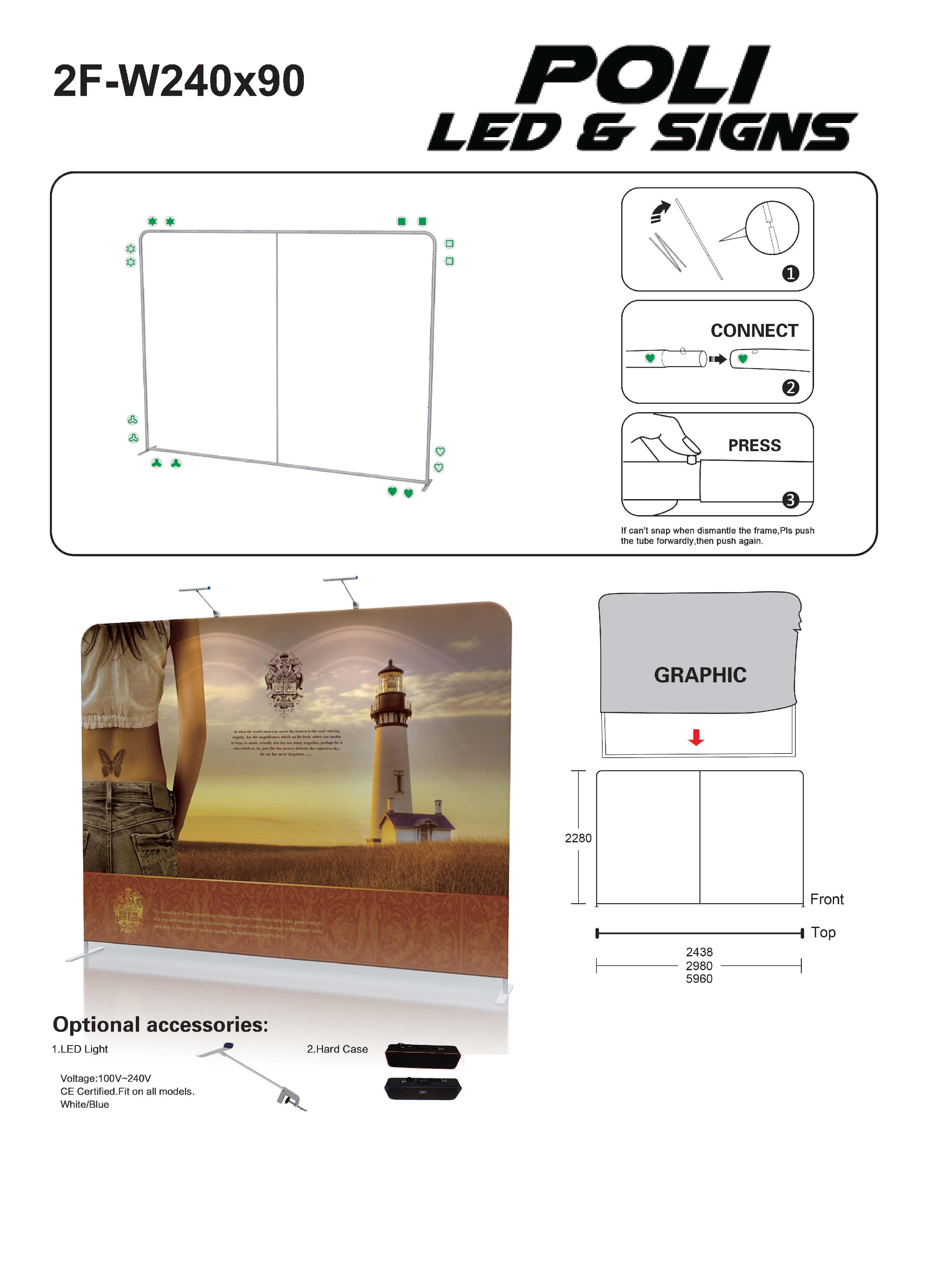 Discontinued Item- 20ft Straight Wall panel display for textile. Graphic size (W)240.39inx(H)89.76in tube 32mm