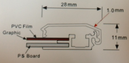 Discontinued Item- Aluminum extrusion 28mmx2.44m Flat Shape open system wall frame