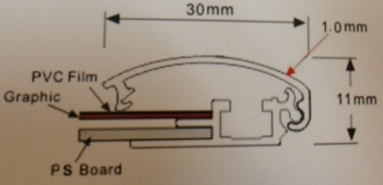 Discontinued Item- Aluminum light box frame with 1 side snap cover (W)1.25in x (D)1.75in x (L)4ft