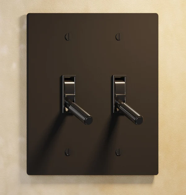 Residence Supply 2 Gang Toggle Switch, Night Black w/ Brass, 120 VAC, 150W Load Per Switch, 3-Way, UL Listed