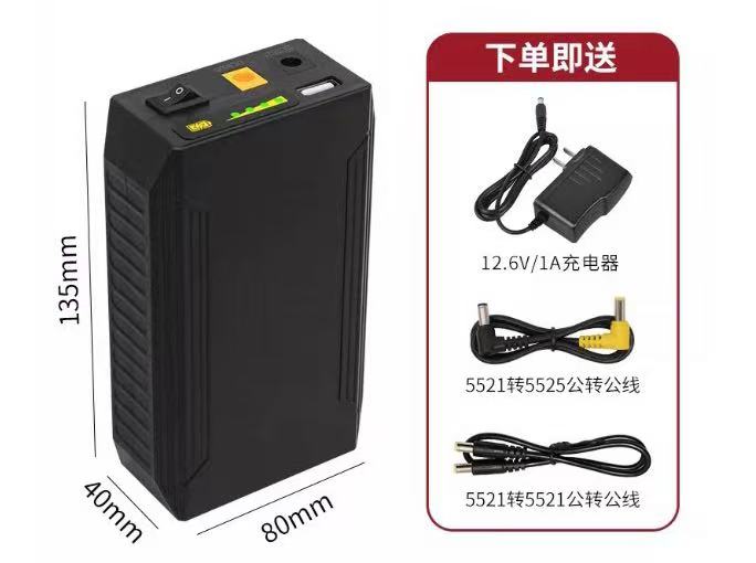 Rechargeable 12V Lithium Battery 18000mAh 66.6 Wh input 12V(2A) outputs 12.6V/6A 9V/2A 5V/2A size 135x80x40mm Charger included