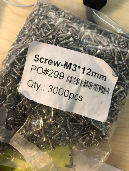Stainless steel screw 304 M3*12mm, bag/1000pcs