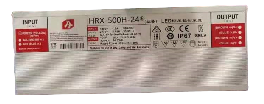 Poli 24VDC 500W Rainproof LED Power Supply 120VAC Input