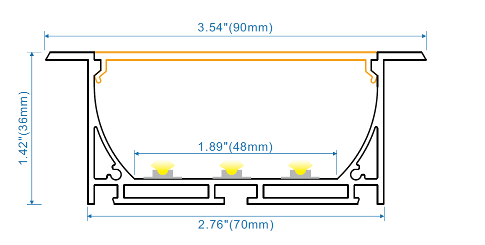 Recessed Mount Hanging/Spring Clip- W:70mm*H:36mm*L:8.2ft/98in InnerW:48mm LIQUIDATION SALE - Limited 30-day Warranty