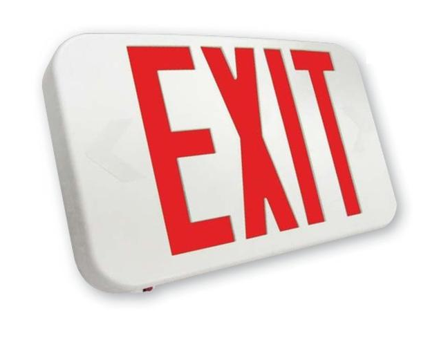 Slim Red LED Exit Sign, >90min battery backup, UL Listed, 120/277VAC