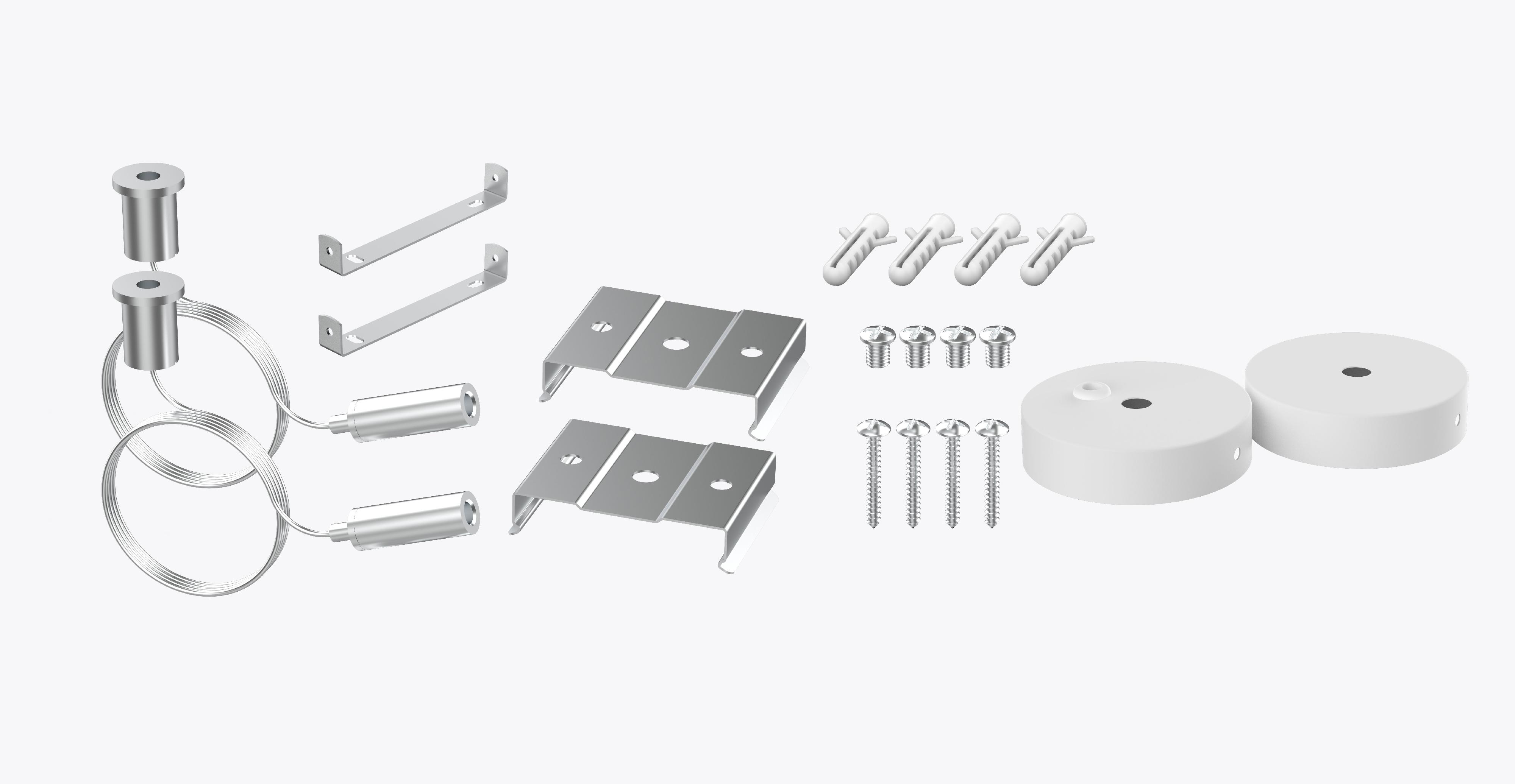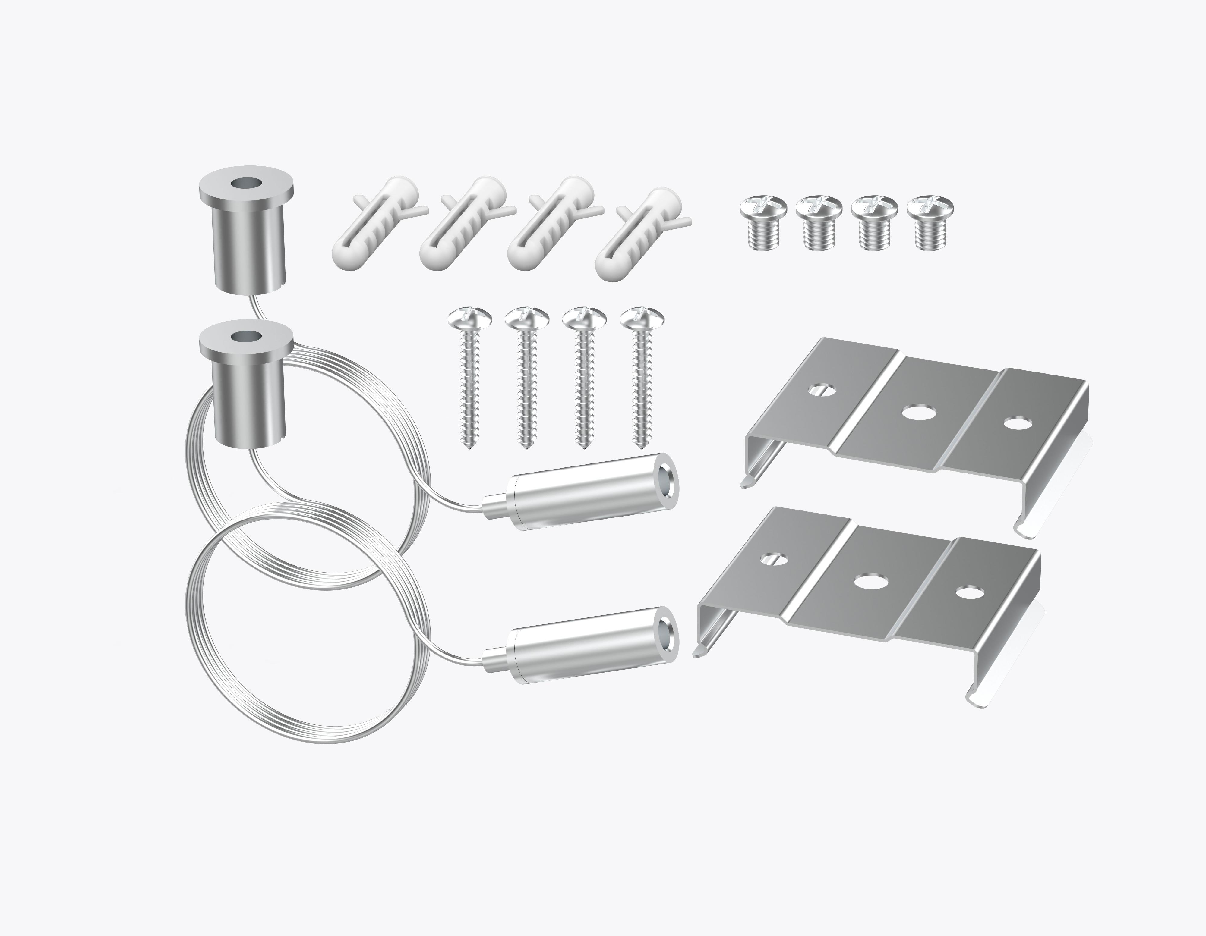 Suspended accessory for 9-P2?x2?-F frame light, includes: 4pcs 1meter hanging wire, 2pcs DC wire and screw accessory