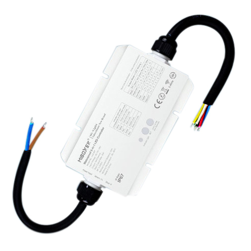 Waterproof 5 in 1 LED Strip Controller WiFi+2.4GHz DC12-48V 10A/Channel Max 20A Control Distance 30m IP67 Work Temp -20C to 45C Requires gateway for smartphone control