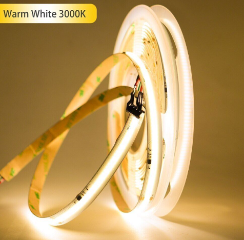 Waterproof COB Series LED Strip Light, 8mm PCB, 480-leds/m, 24V, 9W/m, 5M/roll, IP20, 4000K, CRI>90, 3 Year Warranty, UL Listed