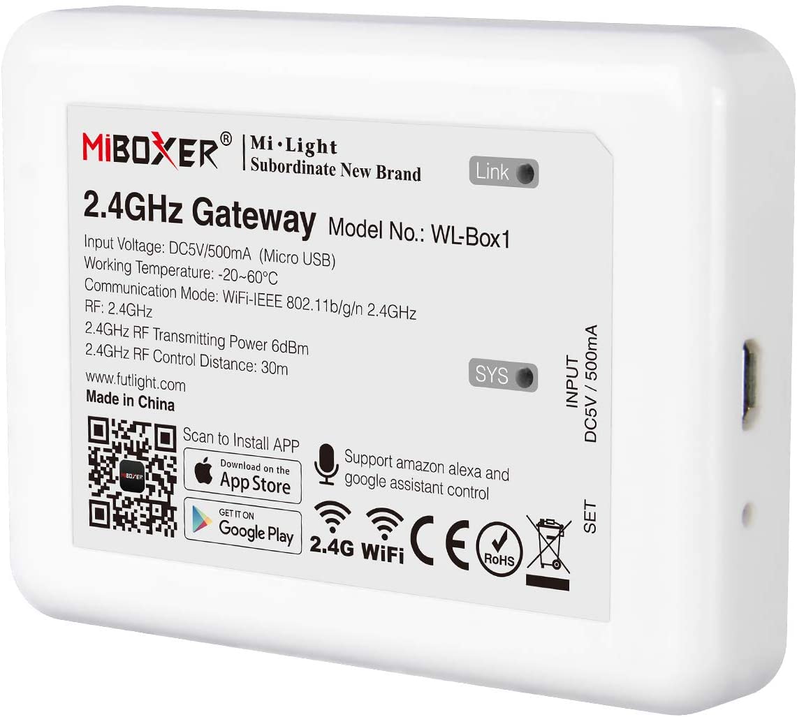Wireless gateway connects to controllers and allows smartphone access, compatible with Google Home/Alexa
