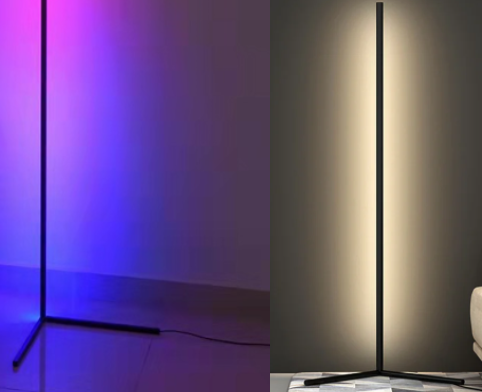 Discontinued Item- FINAL SALE - Limited 30-day Warranty- Price Drop 30%- LED Corner Floor Lamp 18watts RGB+3000K Warm White in RF 52 keys music remote with Power Supply 110-240V with US plug size 52inx12.6inx12.6in Aluminum frame+Silicone lampshade I