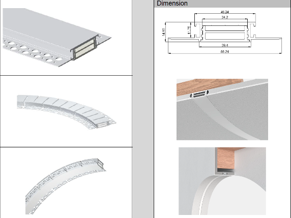 Discontinued Item- LDW Drywall Flex Series Silver H 14.85mm W 34.2mm L 2M Weight 0.706Kg m MAX LED Strip Width 34mm Max power 20W m Installation Recesed