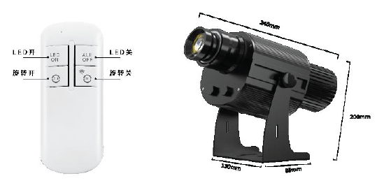 Discontinued Item- LED laser image projector Wattage:80W Voltage:AC85-265V IP Rating:IP67 Work mode:rotatable stationary Functions of remote control:ON OFF Rotary switch