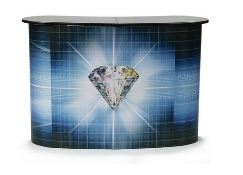 Discontinued Item- Promotion wood top Counter with aluminum structure (L)52inx(W)16inx(H)35in Image size (W)21585cm (72inx33.5in)
