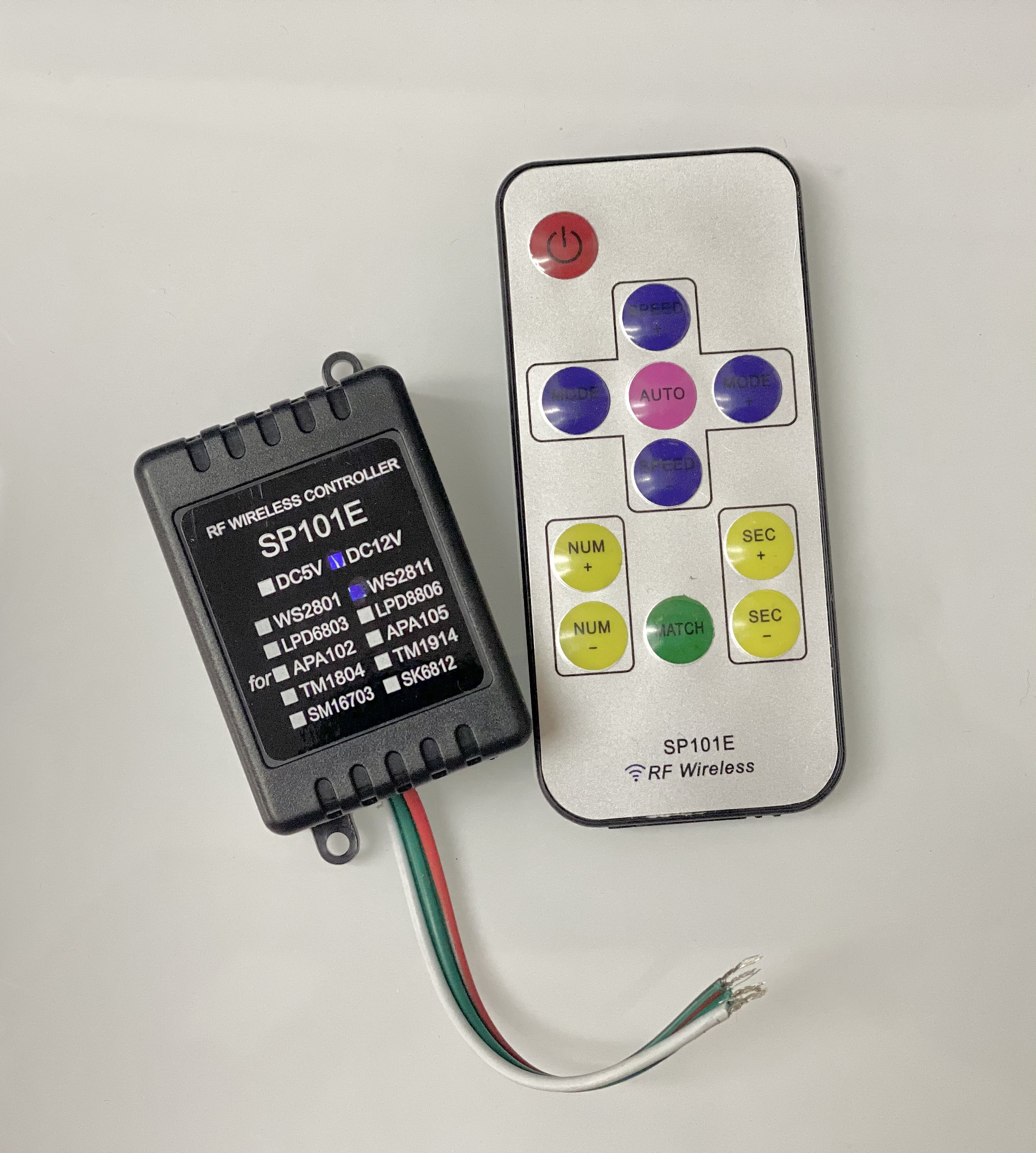 Discontinued Item- RF Remote SPI LED Controller with Music sensor 12VDC 20 modes 5 music effect