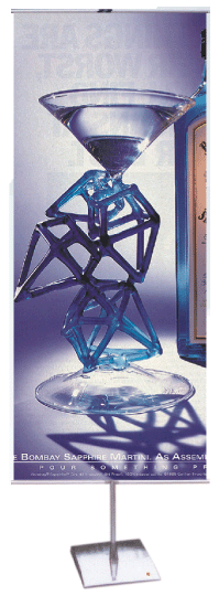 Discontinued Item- T type doubles sided banner adjustable steel display (H) 0-79in used with rigid boards or used with banner with horizontal bar.