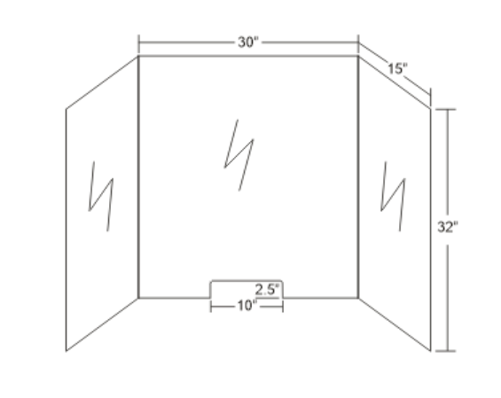 Discontinued Item- Three panel sneeze guard shield 4mm acrylic with plastic hinge front panel (W)30inx(H)32in side panels (W)15inx(H)32in