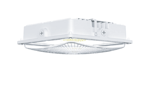 Discontinued Item- UL Listed 75W LED Canopy Light 5000K 120-277VAC 50 60Hz 130LM W 9750LM Lumileds LED Chip IP65 CRI >70 Slim White Casing 0-10V Dimming 4KV 5 Year warranty
