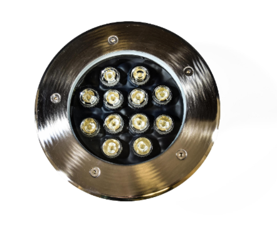 Discontinued Item- Underground LED Light 12W 24VAC RGB 30 degrees beam D180x90mm IP67 stainless steel with plastic template