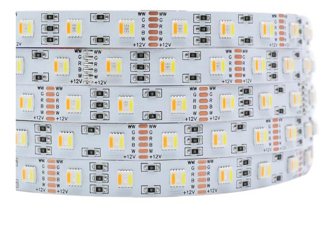 Discontinued Item- UL Listed Indoor 5 Channel RGB+CCT LED Strip Light SMD5050 5in1 60chip m 5in1 24VDC IP20 19.2w meter 96W roll 12mm PCB width CRI >80 300 LEDs roll 2 Year Warranty 5meter roll