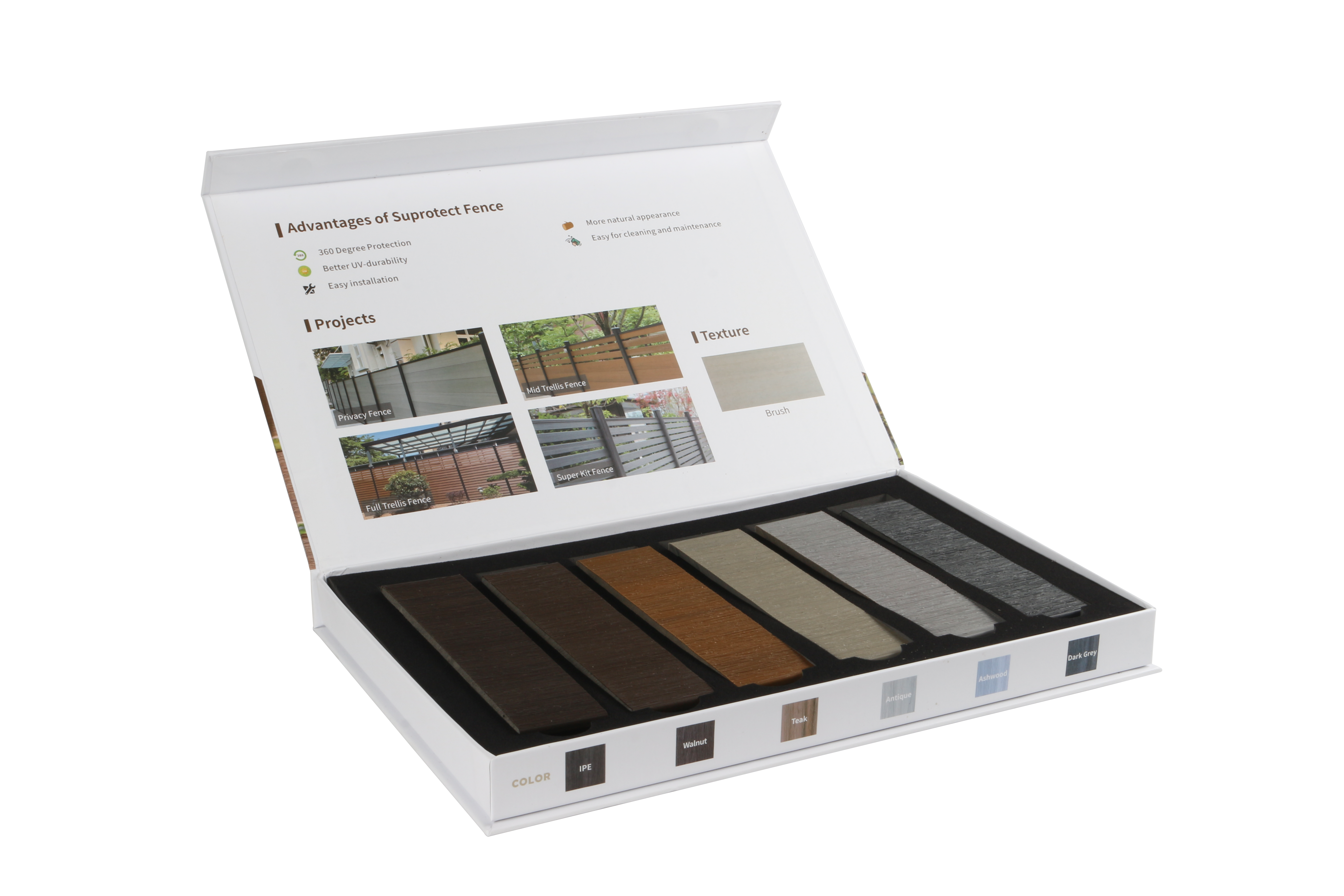 Fencing Sample Box for Fencing that contains one slice of each Color