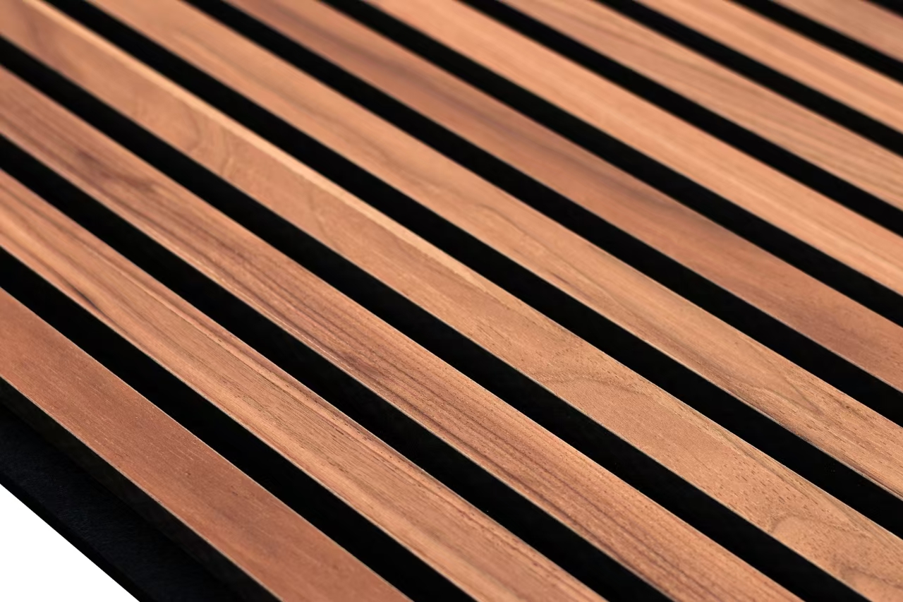 INDOOR WOOD PANEL Natural Dark Walnut slat acoustic panel MDF with veneer; recycled polyester felt, Size:2400x600mm, Sold By Pack 2 units