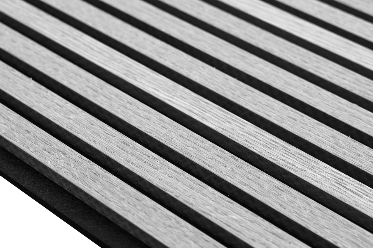 INDOOR WOOD PANEL Natural Grey Oak slat acoustic panel MDF with veneer; recycled polyester felt, Size:2400x600mm, Sold By Pack 2 units
