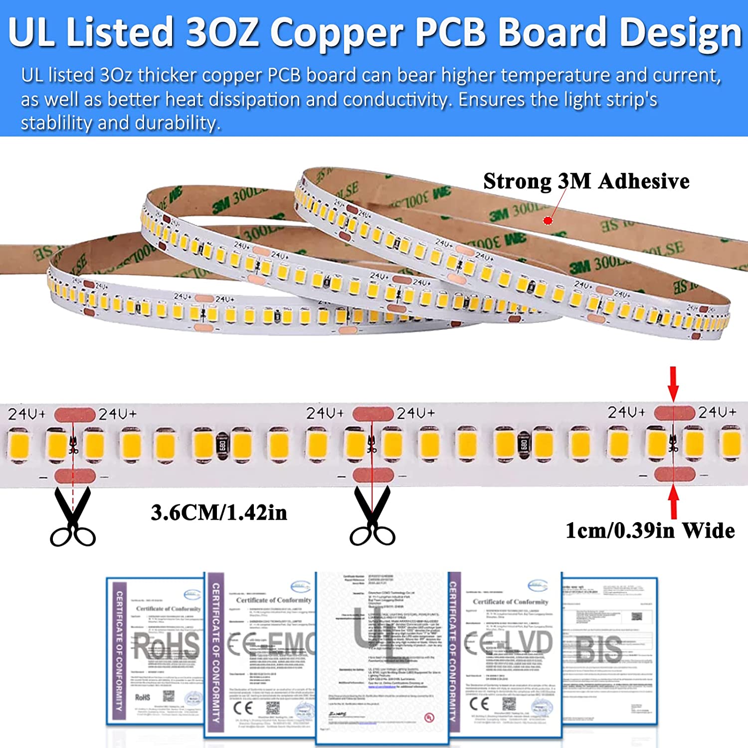 Discontinued Item- JOYLIT High Efficiency 24V LED Strip 5000K 15000LM Bright Daylight White CRI 92+ 16.4ft UL Listed Premium 120W 2835 SMD 224LEDs M High Density Ultra Bright Adhesive Tape Light for Commercial Home
