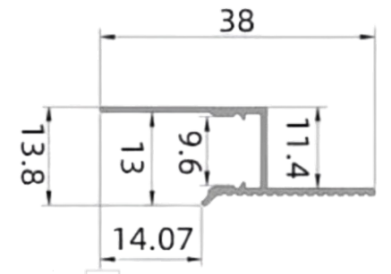 Drywall Trimless Profile, 0.375", Silver, H:13.5mm, IW:9.5mm, OW:12.5mm, Wing: 32.5mm, L:3m